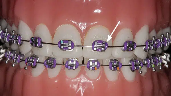 Mistet elastik eller metal omkring bracket.