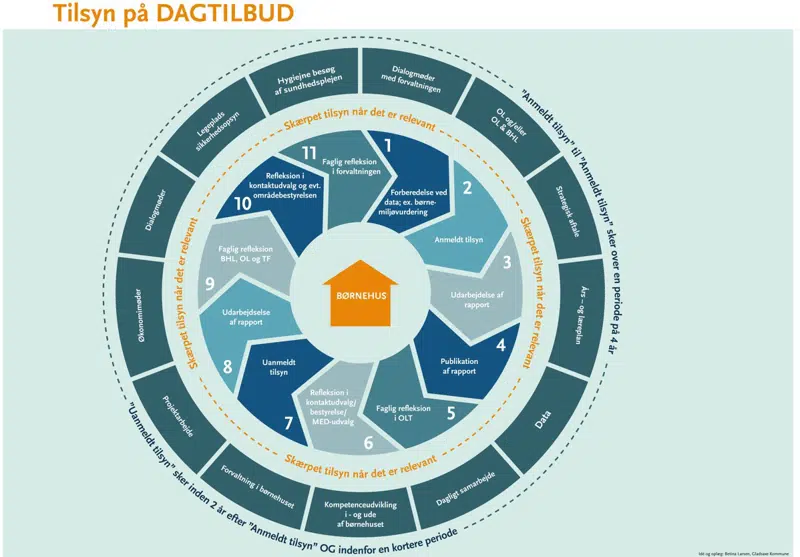 Gladsaxe Kommune udarbejdede i 2015 en ramme for et strukturerede, dialogbaseret og anmeldt tilsyn, som gennemføres hvert andet år i alle dagtilbud. Derudover blev det løbende faglige tilsyn beskrevet.