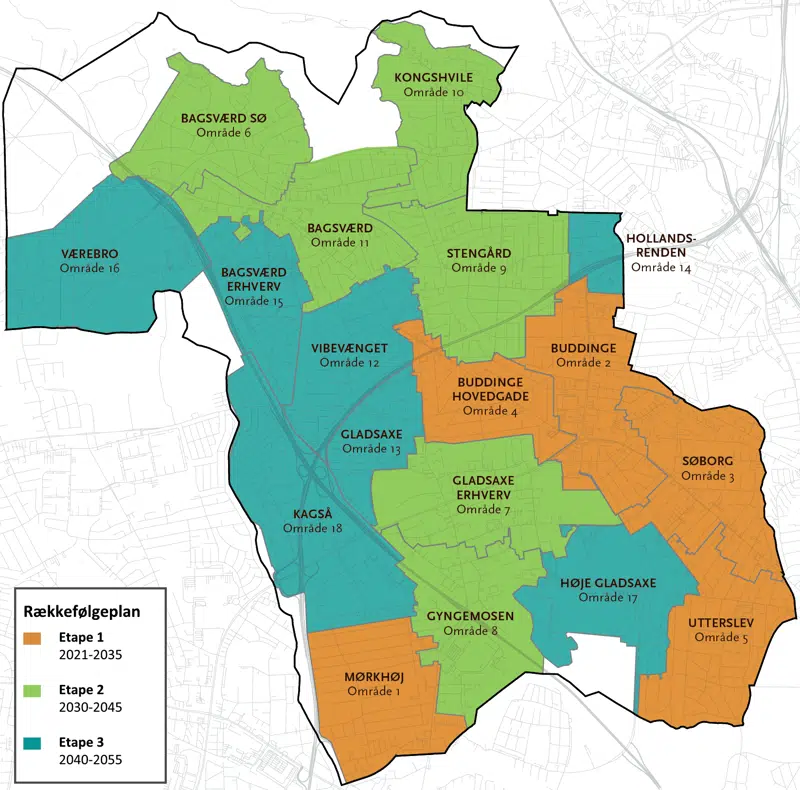Kort med rækkefølgeplanen for separering i Gladsaxe Kommune