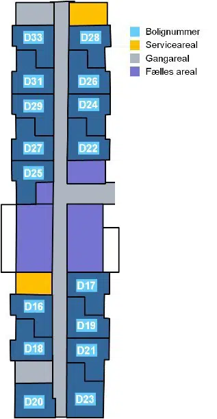 Bofællesskabet Udsigten består af 17 boliger. Obs - målene på boligen er ikke helt nødagtig, kan variere i forhold til tegningen.