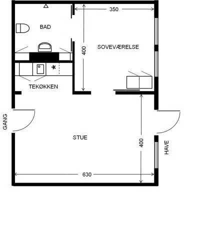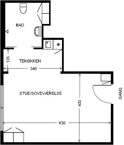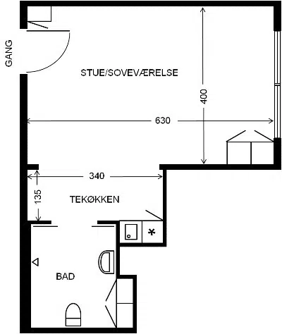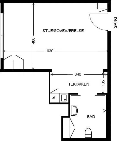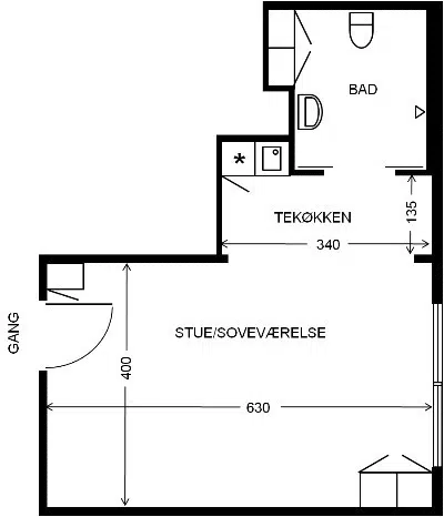 På nedenstående oversigt kan du finde skitsetegninger på de forskellige boligtyper som findes på 1. sal. Vær opmærksom på at skabenes placering kan afvige fra tegningen.