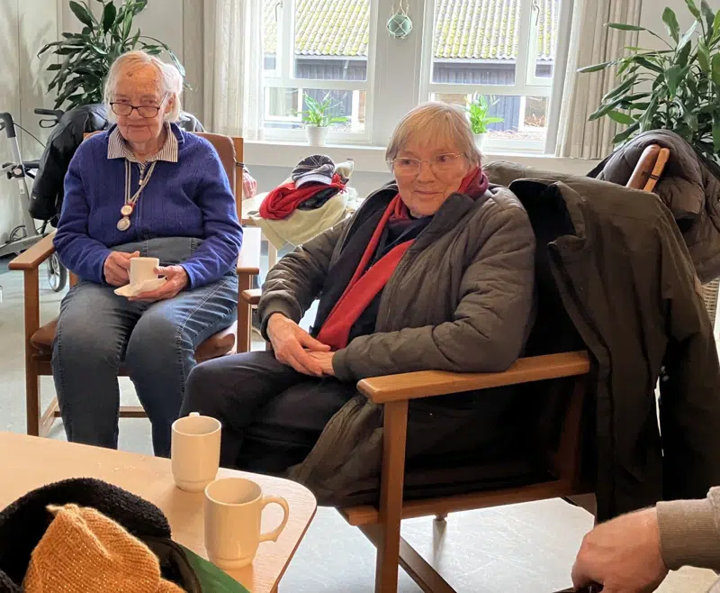Anne-Mettes søn Mikkel har været i praktik på Møllegården. Han var blandt andet med på gåtur og til den efterfølgende hygge i dagligstuen med kaffe og småkager.