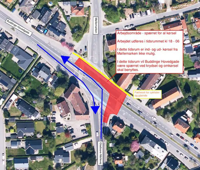 • Ingen ind-/udkørsel fra Møllemarken ved Buddinge Hovedgade