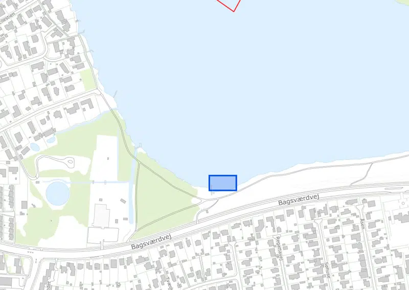 Tirsdag 3. november 2026 har Gladsaxe Kommune frigivet et afgrænset området på Bagsværd Sø til færdsel. Området ligger ved Bagsværdvej tæt ved Aldershvile Planteskole og er afgrænset med pæle - det er indtegnet med blåt på kortet herunder.