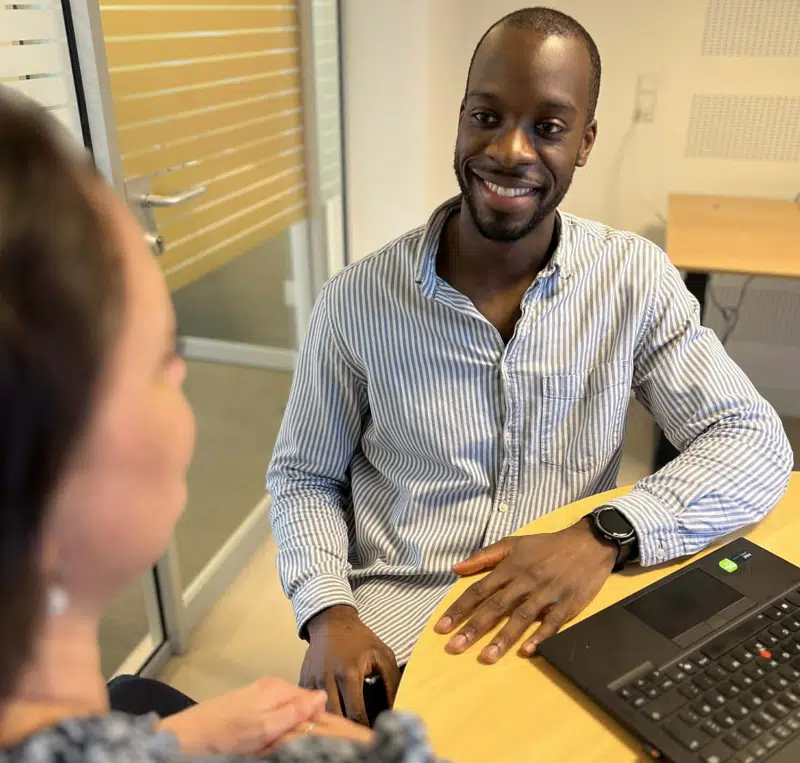 - Når jeg bruger AI-løsningen Roboref under et visitationsbesøg, føler jeg mig mere til stede sammen med borgeren. Løsningen hjælper mig med at få det hele med. Samtidig sparer jeg tid på dokumentation, da løsningen automatisk genererer et referat fra visitationsbesøget, som jeg efterfølgende redigerer. Det giver både bedre dokumentation og en bedre dialog med borgerne, fortæller Bethel Wandt Makumbu, visitator i Social- og Sundhedsforvaltningen.