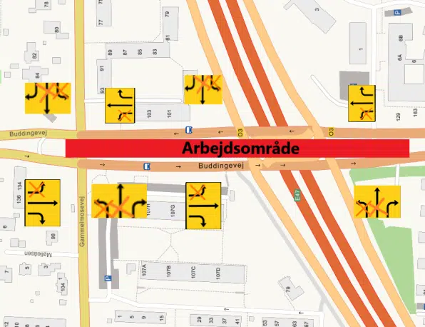 Vejarbejde i lyskrydsene Buddingevej/Gammelmosevej og Buddingevej/Motorring 3-krydset